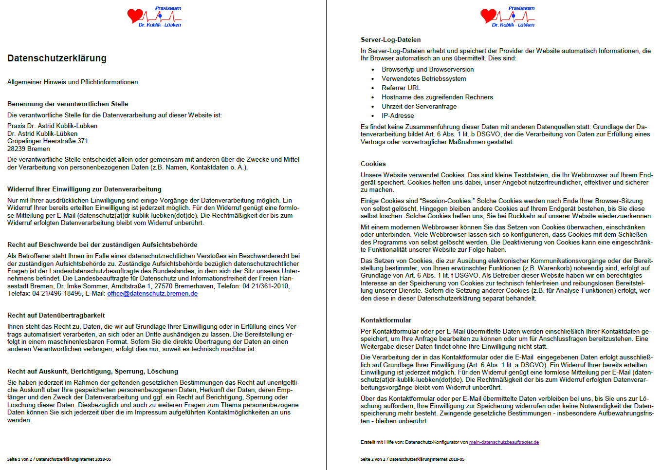 © Dr. Kublik-Lübken 2000- Haftungsausschluß
